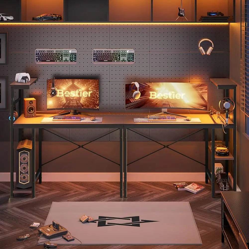 Built for style and efficiency, this 44″ Gaming Desk features vibrant LED lighting, smart reversible shelves, and a side storage organizer — making it the perfect all-in-one setup for small gaming rooms, bedrooms, or apartments.